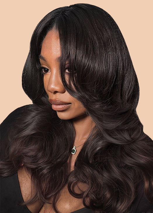 Selena 13x4 HD Transparent Frontal Lace Auburn Highlights on Black Hair Body Wave Wig Invisible Knots Realistic Hairline- Regular price